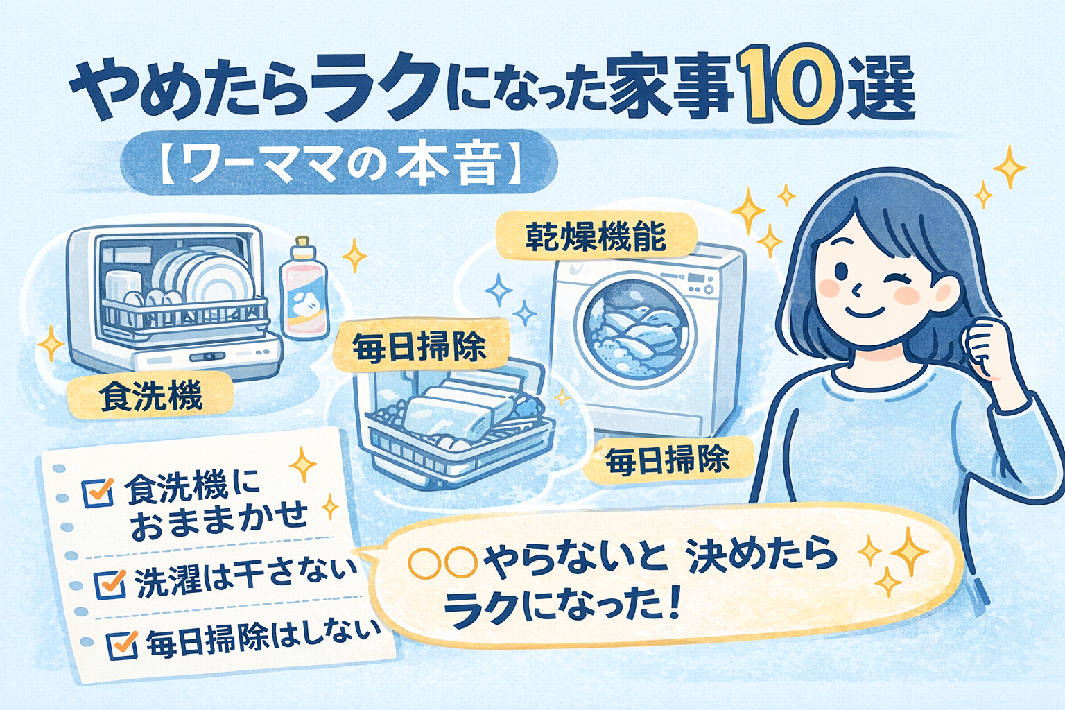 今回は、ワーママの私が「やめたらラクになった家事」を正直にまとめます。